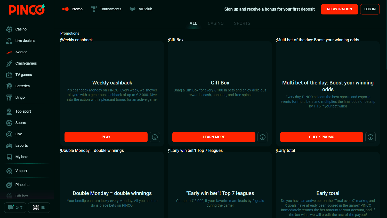 Поддержите казино Pinco